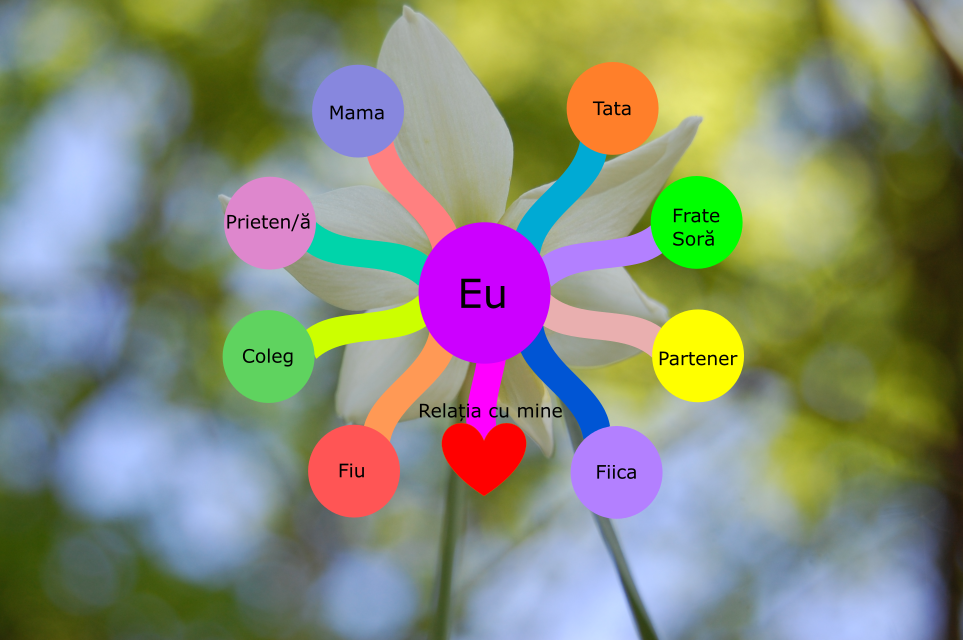 Dacă ar fi să faceți un exercițiu, cam câte relații aveți în acest moment? Cum arată fiecare relație dacă încercați să o desenați? Folosiți culori vii sau neutre? Ce anume vă determină să le vedeți așa?
